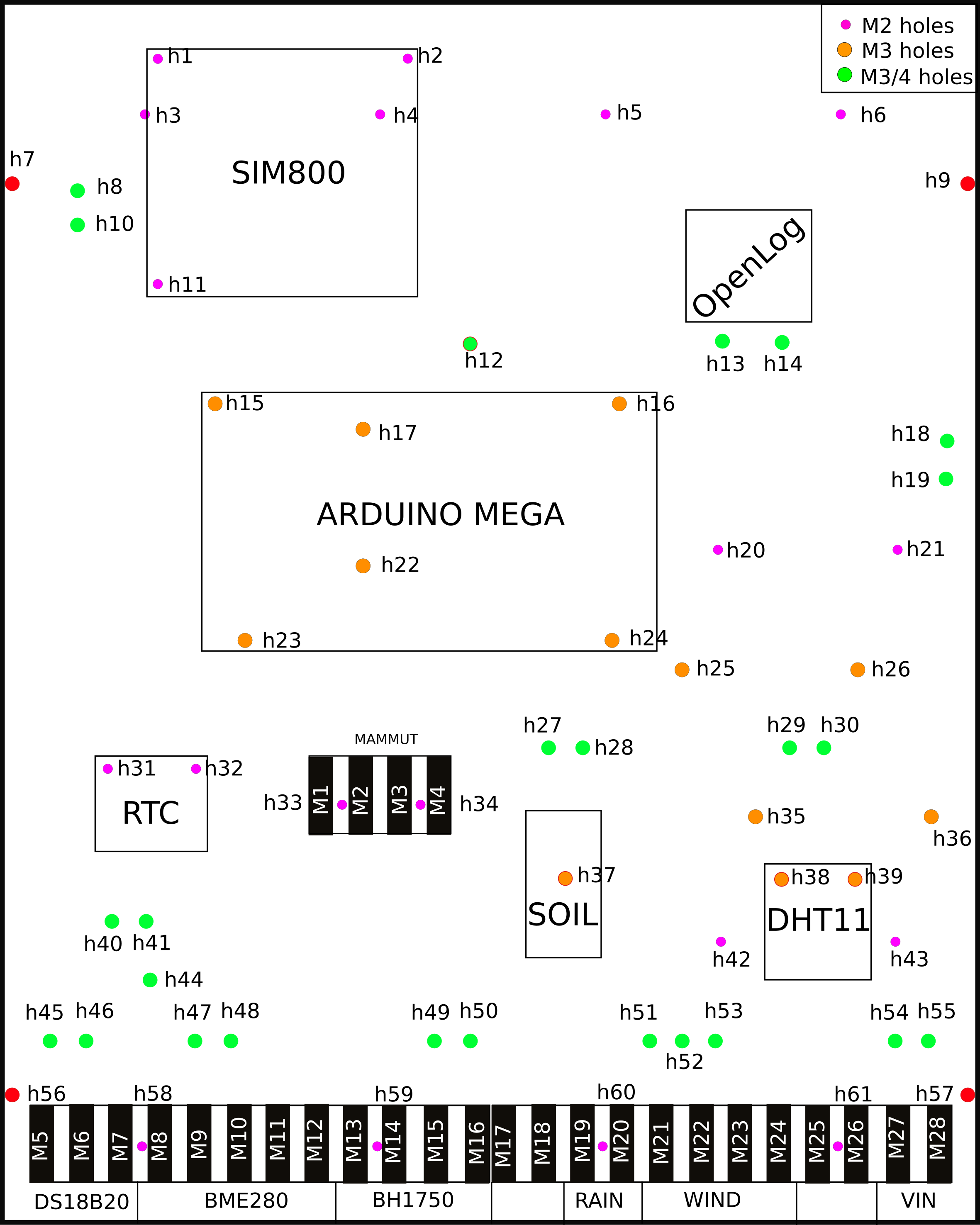 Do not mount the components during this step and leave empty the green holes.