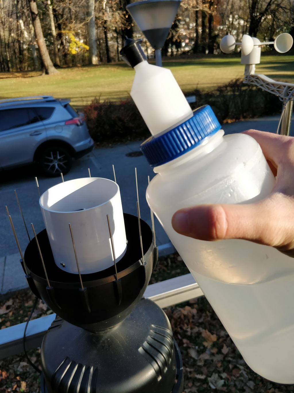 - a structure to vertically keep the bottle over the rain gauge funnel;